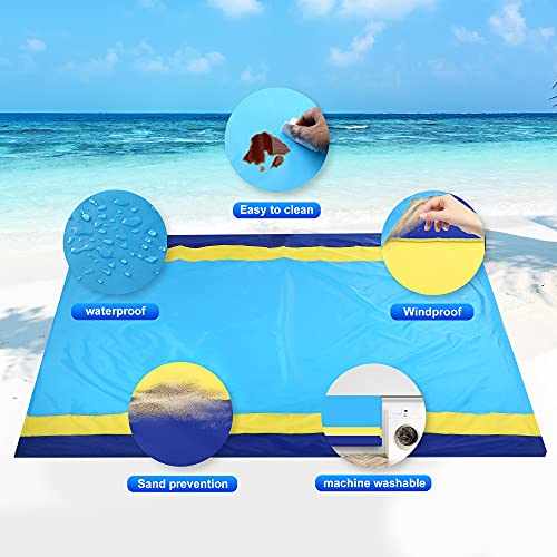 Beach Mat Sand Free Beach Blanket, Waterproof & Sandproof Picnic Blankets, 79" X 83" Large Mats for 2-7 Adults, Outdoor Lightweight Blanket for Travel, Camping, Hiking, For Family, Kids, All Age
