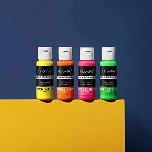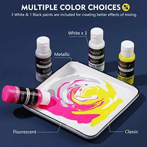 Magicfly 16 Colors Acrylic Pouring Paint (60ml/2 oz), Pre-Mixed & Ready to Pour Acrylic Pouring Paint for Canvas, Wood, Stone, High Flow Liquid Acrylic Paint Ideal for Fluid Art, DIY Projects