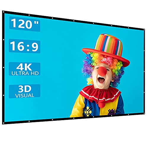 Projector Screen, 120 inch Premium 4K HD 16:9 Foldable Anti-Crease Wrinkle-Free Portable Projection Movie Screen for Home Theater Outdoor Indoor