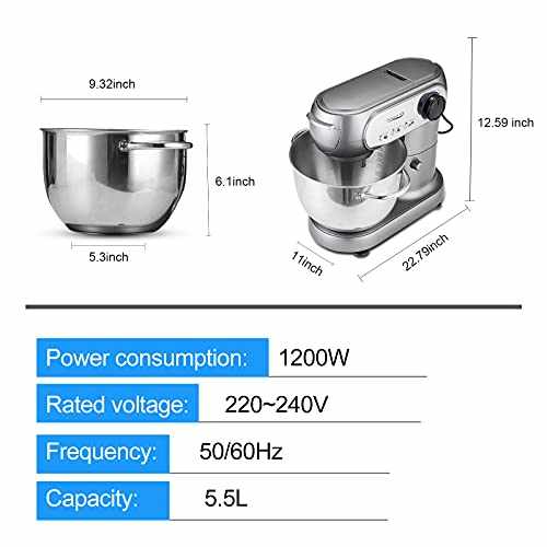 Stand Mixer, 5.8QT Kitchen Electric Food Mixer, 1200W 6-Speed Tilt-Head Dough Mixer with Dough Hook, Wire Whip & Beater